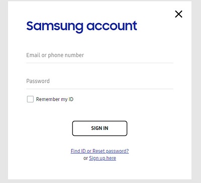 現在返回到三星帳戶頁面,其中有兩個輸入框。 這次,不是“輸入密碼”,轉到“輸入ID”。 在此處輸入任何電子郵件地址。 完成後,點擊 忘記了您的用戶名或密碼?
