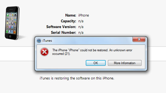 iPhone“iPhone”無法恢復。 發生未知錯誤(21)。“如何解決此問題 iTunes錯誤21 (iPhone錯誤21)?