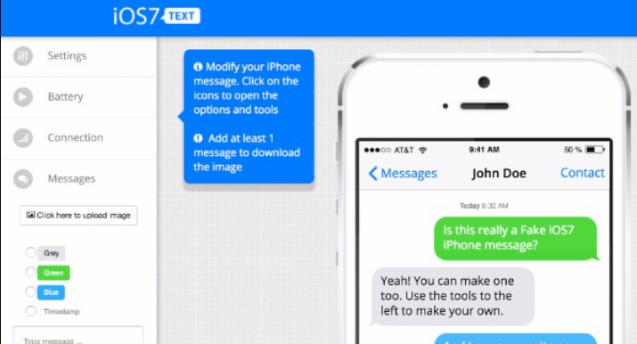 此 iOS 7 文本屏幕左側的圖形包含所有選項。 剛剛創建的這些虛假 iMessage 與最新 iOS 系統中的大多數兼容,其中包括 iOS的15, iOS的14, iOS的13,以及 iOS的12.